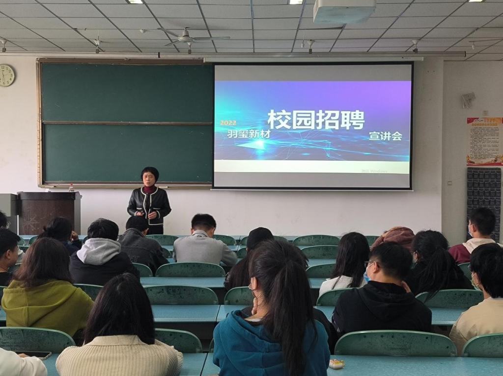 本网讯(文/闫胜利,图/闫胜利)为给学生搭建良好的就业实习平台,进一步提高就业质量,拓宽就业实习渠道,新能源材料与化学学院特邀四川羽玺新材料股份有限公司于11月25日下午在行知楼425教室举办招聘宣讲会,11月27日浙江晶科能源有限公司在行知楼214教室举办招聘宣讲会,20级辅导员闫胜利组织20级化学和材料专业参加了招聘宣讲会。
