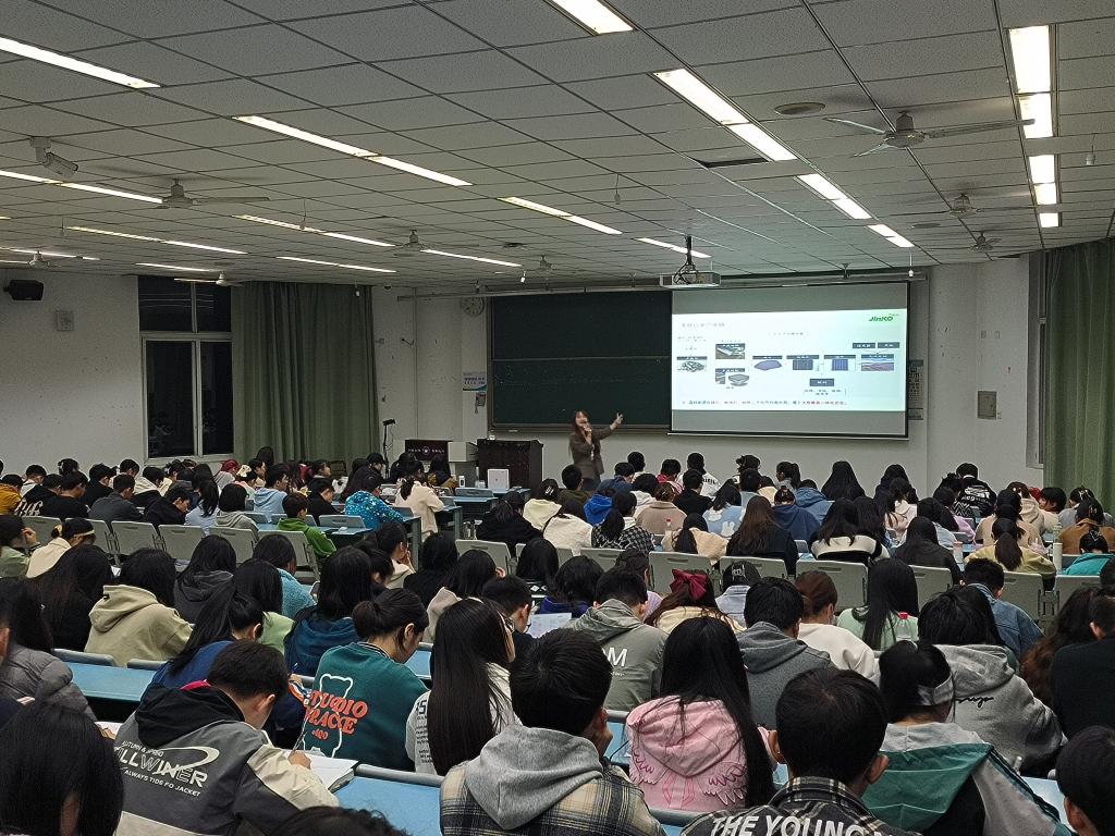 宣讲会上,公司人力总监向同学们介绍了该公司基本情况、规划前景以及招聘的基本条件等,我院学生也主动咨询实习与就业的相关问题。