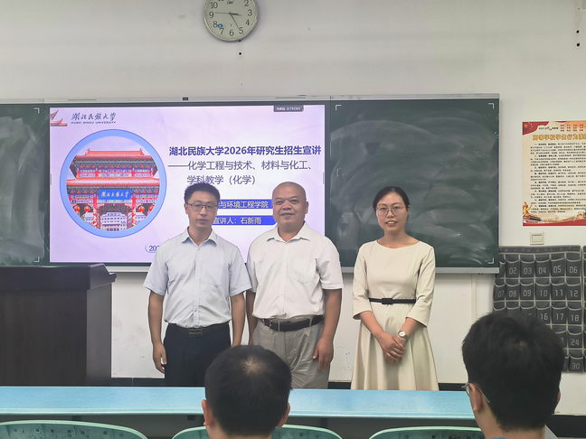 本网讯(文/杨顺福 图/李宛芹)9月25日下午,湖北民族大学研究生招生宣讲会在行知楼216举行,新能源材料与化学学院学院孙国峰书记出席本次活动,民大石新雨老师担任主讲。